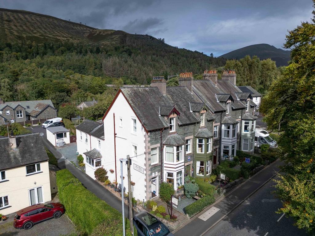 To the front is a a traditional low slate stone wall, planted with flowers and then shilled alongside the path for ease of maintenance. Side vehicle access leads to the owners parking immediately at the rear of the property, alongside the detached single garage. The side driveway has walled and potted shrubs and a designated seating area. Behind the garage, at the very rear of the plot, are six ample guest parking parking spaces all with the wonderful backdrop of Latrigg.