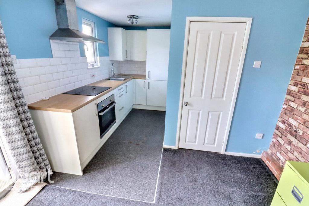 Range of wall and base units with with work surface above incorporating inset sink with mixer tap, space for range cooker with extractor hood over, space for dishwasher, fridge freezer, washing machine and tumble dryer, part tiled walls, breakfast bar, double glazed window to side, double glazed bi-folding doors leading to rear garden.