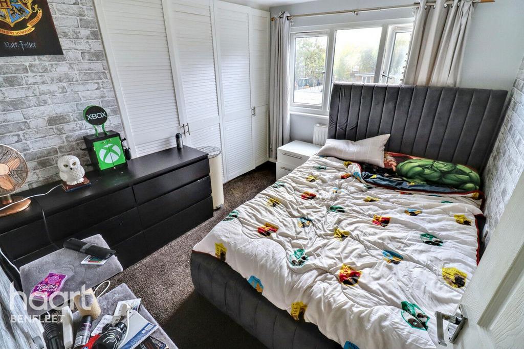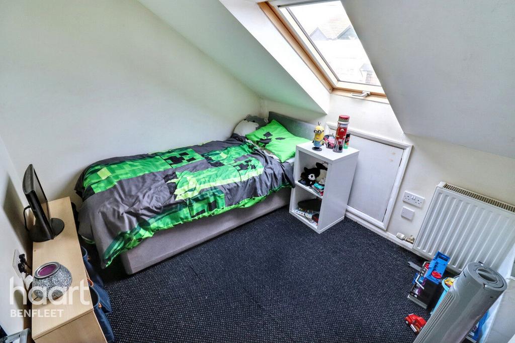 Restricted head height with Velux window to front, radiator, eaves storage.