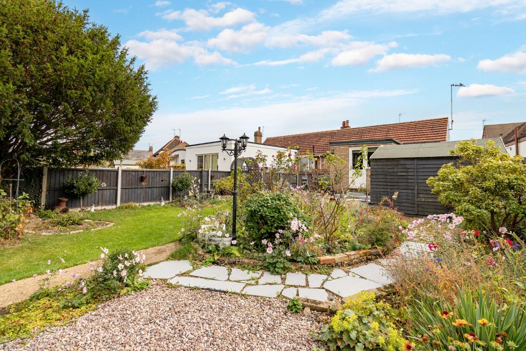 To the rear of the home lies a fully enclosed garden, offering a wonderful outdoor space, ideal for relaxation or entertaining. A paved patio and shingled area extend from the back of the bungalow, creating a perfect spot for seating or outdoor dining. Beyond this, a neatly maintained lawn is complemented by thoughtfully planted borders, adding vibrant colour and seasonal interest throughout the year. To the front, the property benefits from off-road parking and a low-maintenance frontage.
