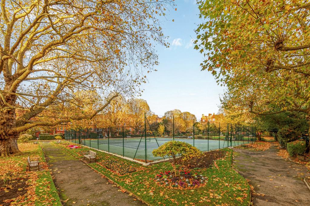 - Private communal gardens with two tennis courts