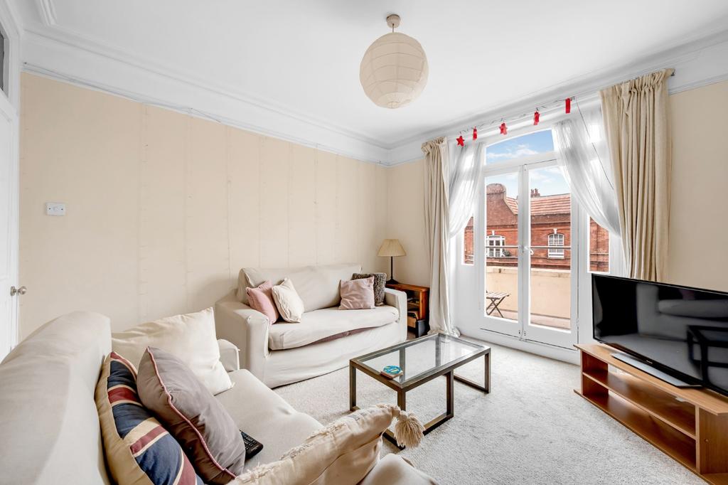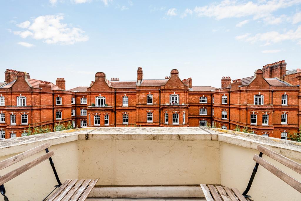 Situated in the ever-popular Queens Club Gardens, this delightful three-double-bedroom apartment offers a rare chance to purchase a top-floor flat with a private balcony.