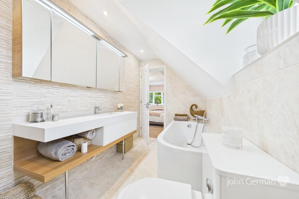 To the first floor, the pleasant landing area provides space for reading or an additional study area, having a skylight providing natural light along with the sun pipe. Doors lead to the four good sized bedrooms, all of which can easily accommodate a double bed and furniture, and the fitted family bathroom, which has modern four piece suite incorporating both a panelled bath and separate double shower cubicle. The spacious master and bedroom two both benefit from built-in wardrobes and ensuite facilities. The master has a luxury ensuite bathroom with a four piece suite incorporating both a panelled bath and separate double shower cubicle.