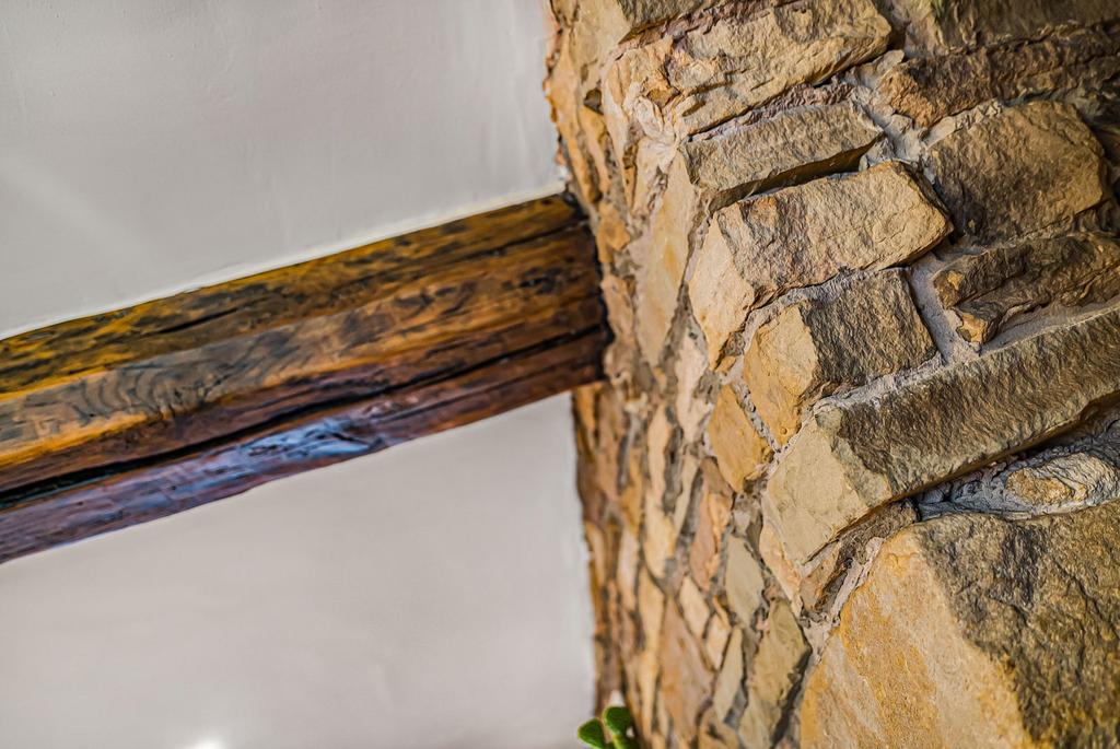 The kitchen opens into the dining area, which has a wooden floor, exposed original stonework, and a multi-fuel burning stove, creating a warm and inviting family space.