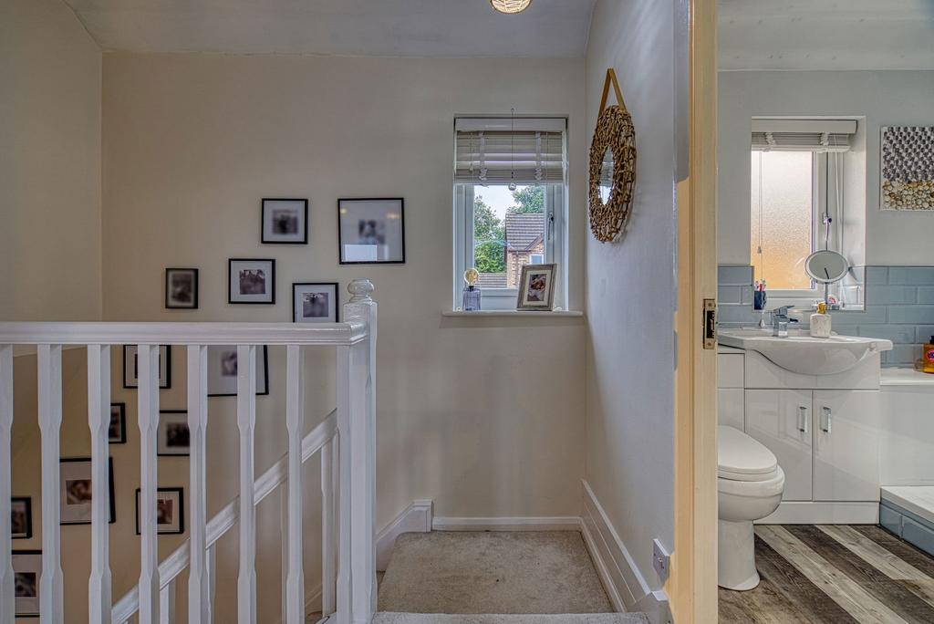 The first floor is home to three generous bedrooms, each offering tranquil retreats adorned with soft lighting and stylish finishes. The well-appointed shower room, with its elegant fixtures and tasteful design, caters to everyday needs with grace.