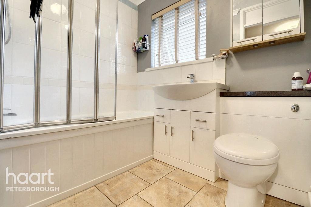 An excellent main bathroom that's both well presented and stylish. Featuring a bath/shower combo, toilet and sink.