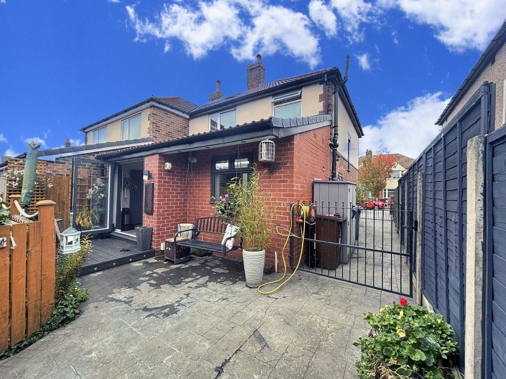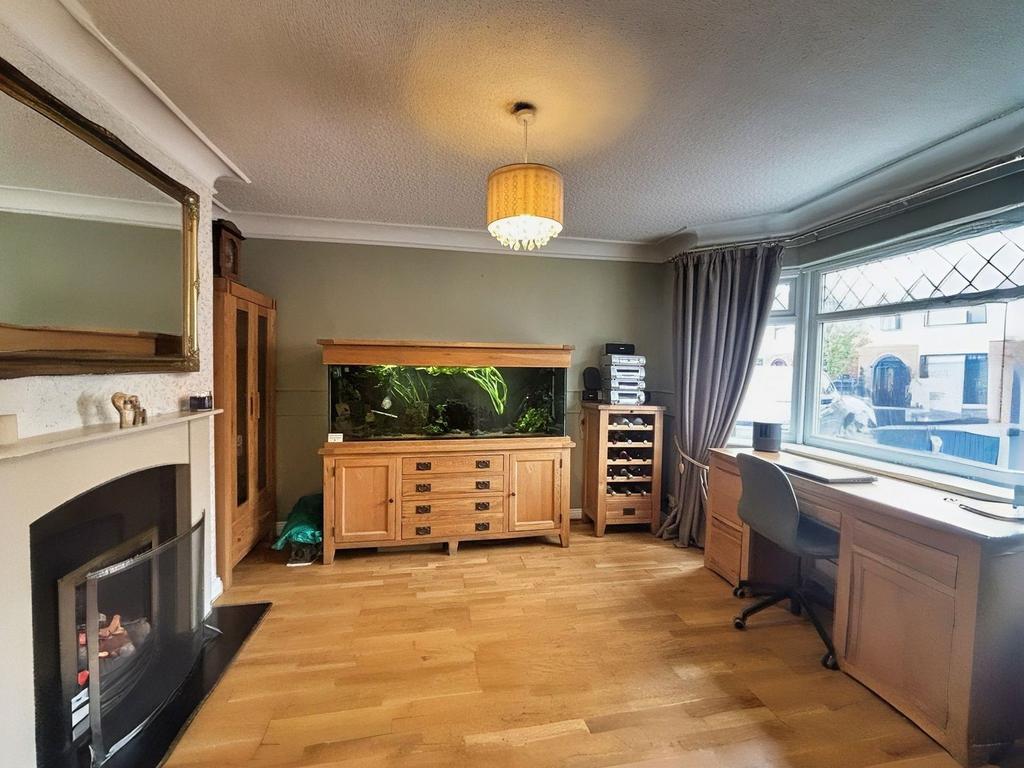 This stunning extended home is beautifully presented throughout, offering spacious and thoughtfully designed living accommodation across two floors. The welcoming entrance hallway features a fully tiled downstairs WC and leads to a generous bay-fronted living room, complete with a cozy open flame gas fire and ample space for your furniture. The expansive sitting room flows seamlessly into the well-appointed kitchen and dining area, which boasts a combination of base and eye-level units, along with integrated appliances including a built-in oven, separate hob extractor hood, integrated dishwasher, and fridge/freezer. There is a kitchen island which provides plenty of seating which complements the space, while bi-folding doors open up to a fabulous garden. Additional conveniences include a utility room equipped with more base and eye-level units, a Belfast sink, and ample space for a washer, dryer, and other appliances. The first-floor landing provides access to three well-proportioned bedrooms. The master bedroom is a generous double with a bay window to the the front aspect. The two additional bedrooms are also spacious, and the luxurious family bathroom is a true highlight, featuring a walk-in shower and bath, fully tiled walls and flooring, and a built-in TV for relaxation and under floor heating. There is a large loft space with power and lighting and two velux windows which provide lots of natural light. This property sits on a generous plot, with a driveway at the front accommodating parking for multiple vehicles, plus gated access to the rear garage and garden. The landscaped rear garden is a beautiful outdoor oasis, featuring a charming paved raised patio area ideal for al fresco dining. A large block-paved area offers access to a secure side entrance, garage, and a fenced lawn with a delightful pond and mature flowerbeds. A garden shed provides useful storage, while the overall design of the garden ensures a high degree of privacy.