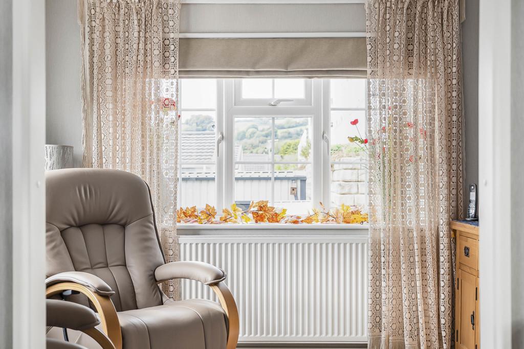 - Lounge with bay window and decked terrace.