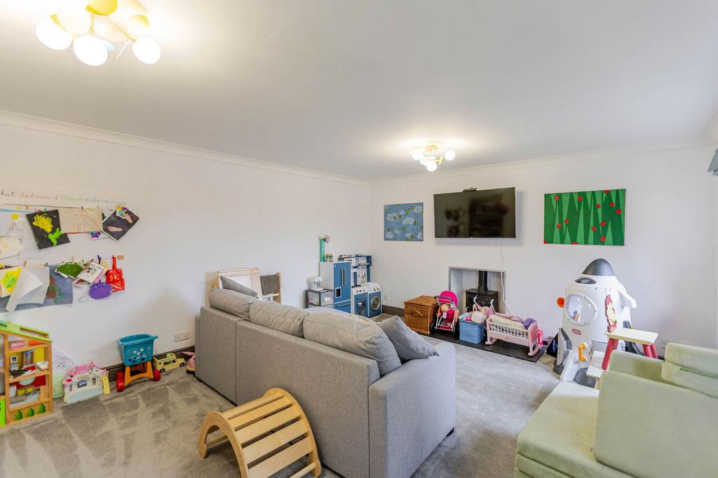 Sitting / Play Room (5.62m x 4.44m) - A feature fireplace with wooden surround and living-flame gas fire, UPVC double glazed windows and door to rear elevation, UPVC double glazed window to front elevation, three radiators, ceiling coving and two ceiling light points.