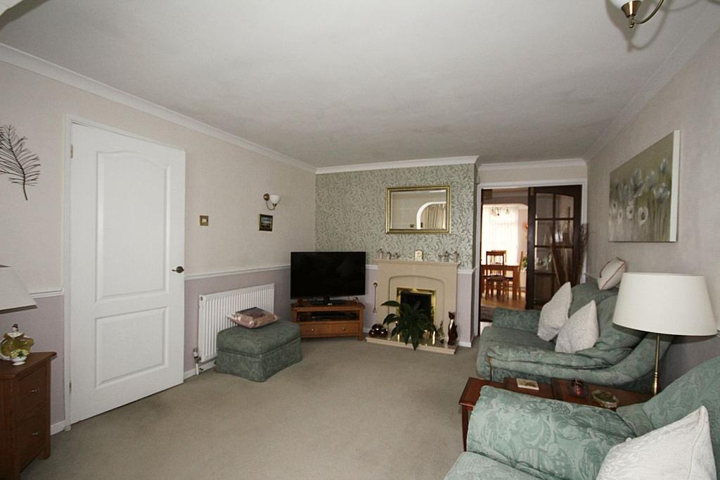 Lounge 18'1 x 11'2 > 10'6m (5.52m x 3.41m > 3.23m): Window to front elevation, feature fireplace, two radiators, doors opening to U-Shaped area.