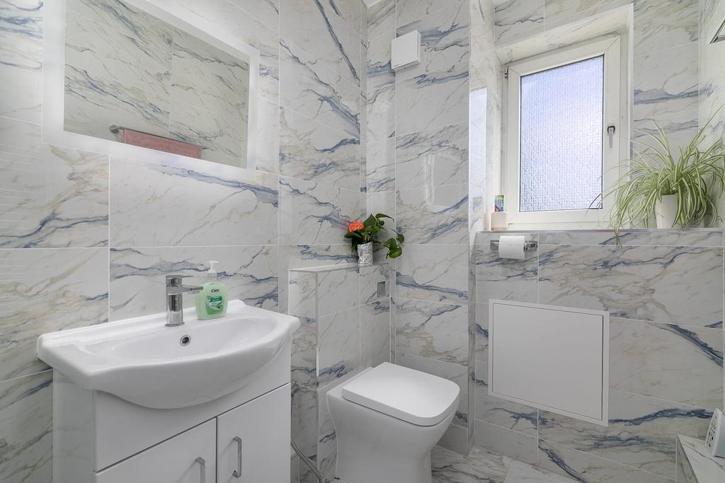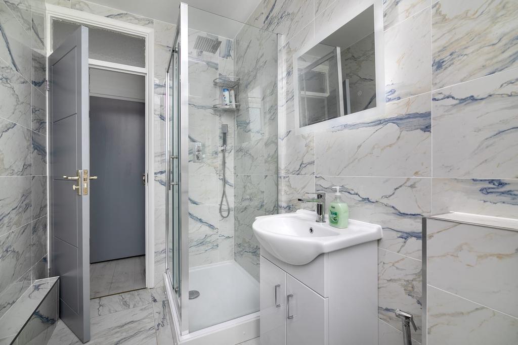 There are two well-proportioned bedrooms, both designed to provide comfort and relaxation. The master bedroom offers generous space for a double bed and additional furniture, while the second bedroom is ideal as a guest room, children’s room, or home office. The modern family bathroom includes a stylish three-piece suite with a shower-over-bath, premium tiling, and elegant fixtures.