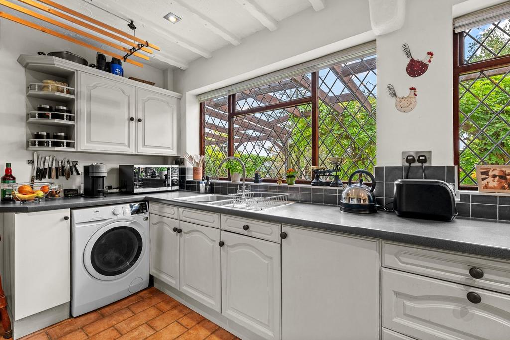 This well appointed breakfast kitchen has a super countryside feel and is fitted with a range of eye and base level units and drawers, inset Franke stainless steel sink and drainer with mixer tap over, complementary work surfaces, space and plumbing for washing machine and dishwasher, electric Rangemaster oven with electric hob, feature painted beamed ceiling, tiling to splashback areas, wall mounted boiler, leaded light windows to rear elevation giving lovely views of the rear garden. The kitchen also has a very useful pantry with shelving and offers space for a good size breakfast table and chairs.