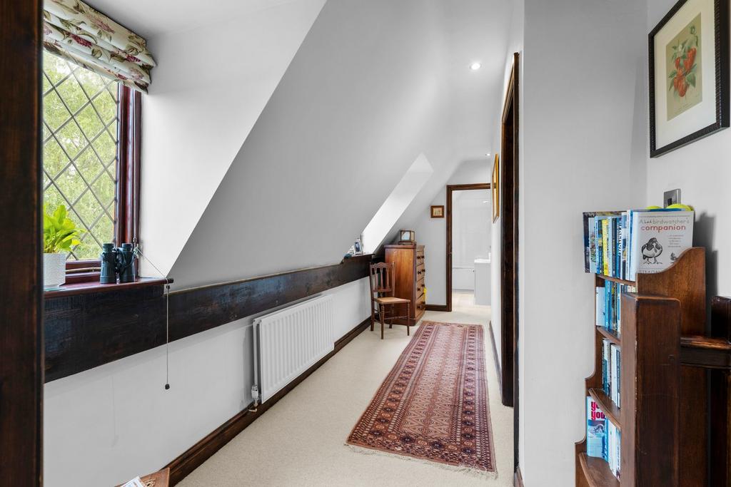 With leaded light windows to the front elevation, fitted with a useful built in wardrobe, large walk in cupboard housing the hot water cylinder and shelving.