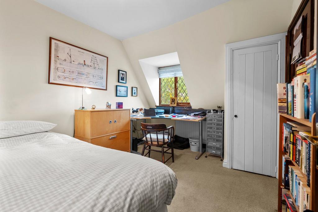 A wonderful generous main bedroom with leaded light windows to three sides making this a very bright and airy bedroom and with the benefit of built-in bedroom furniture.