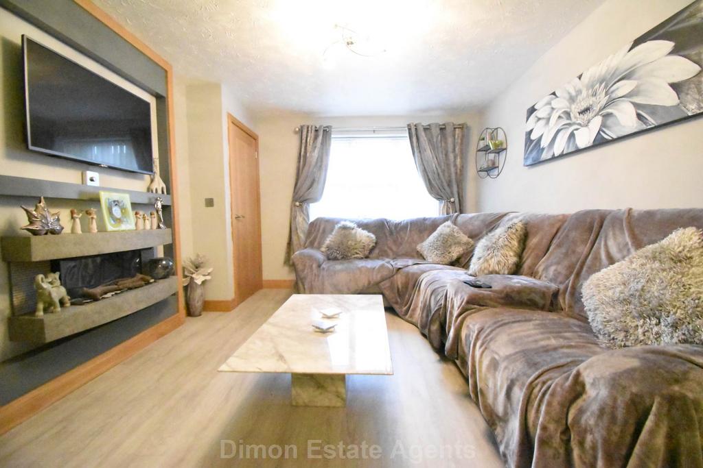Understairs cupboard, PVCu double glazed window, radiator, laminate flooring, feature electric fire, archway to: