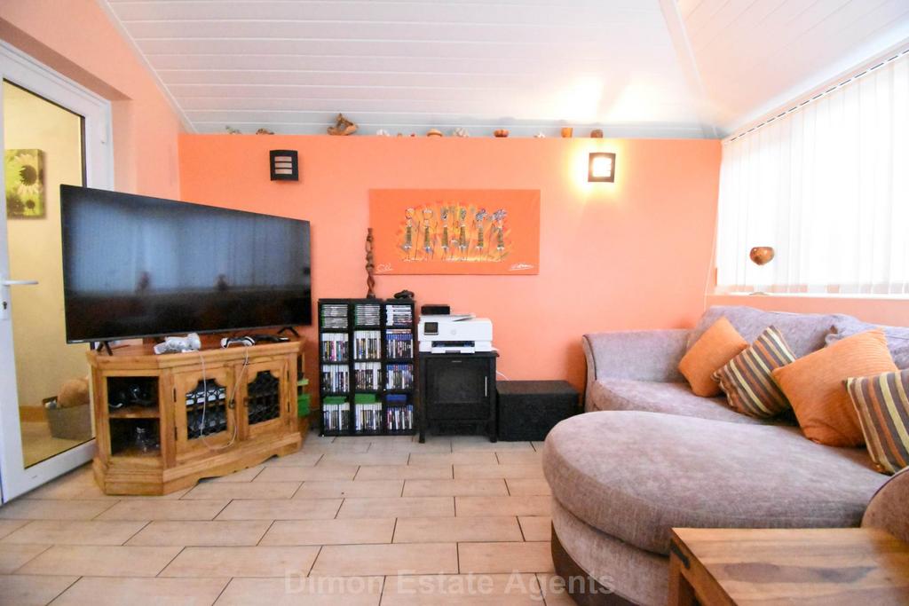 narrowing to 7'10 (2.39m), L Shaped, PVCu double glazed windows and French doors, insulated roof, ceramic tiled floor with under floor heating.