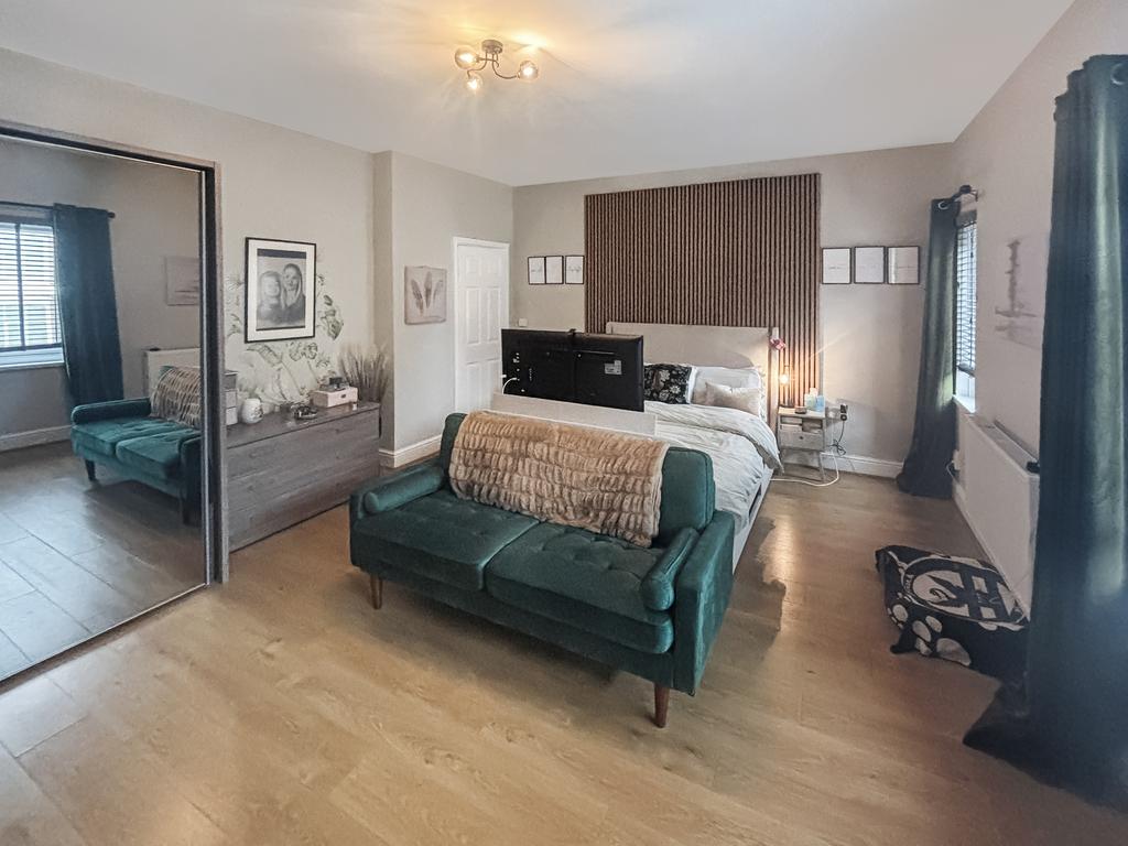 With access to a private roof terrace enjoying panoramic views over Llanelli and North Gower, complete with dressing room and en-suite.