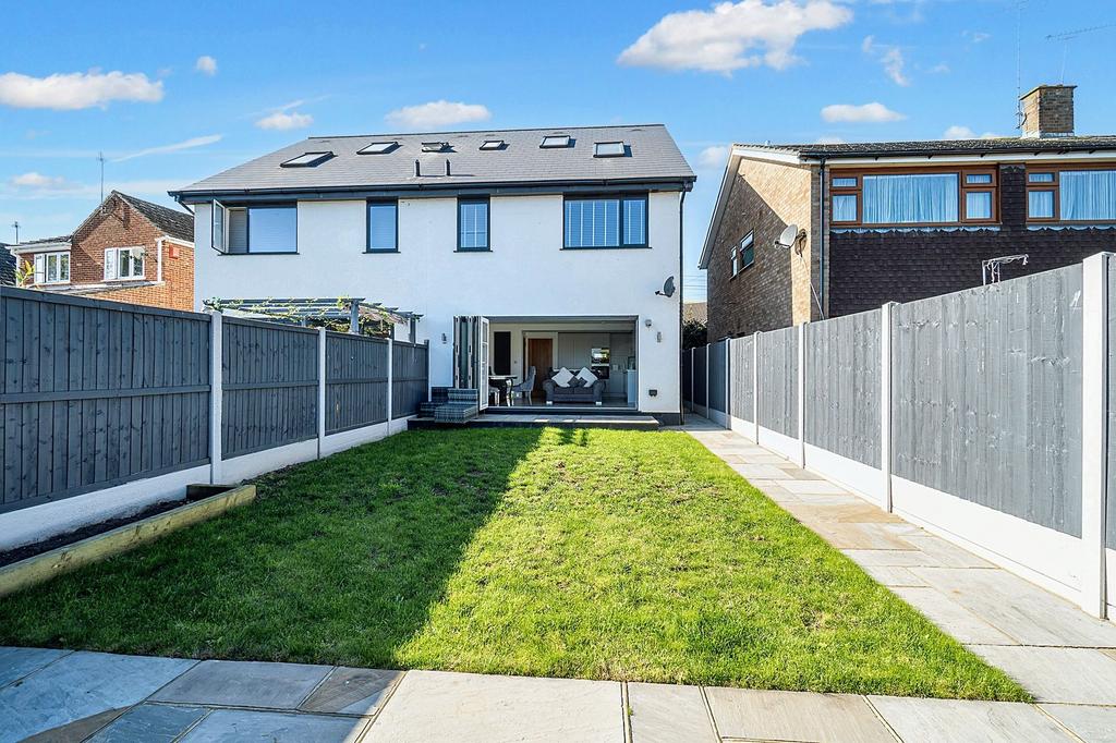 Step inside and be greeted by the contemporary open-plan family room and kitchen, complete with bi-folding doors that lead to the rear garden, perfect for entertaining friends and family. The luxurious modern kitchen features quartz worktops, an island unit, and is a chef's dream come true.