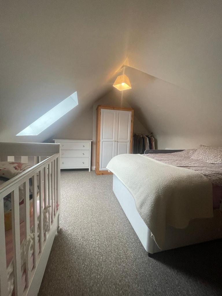 Pitched roof, skylight window, gas central heating radiator, carpet flooring.