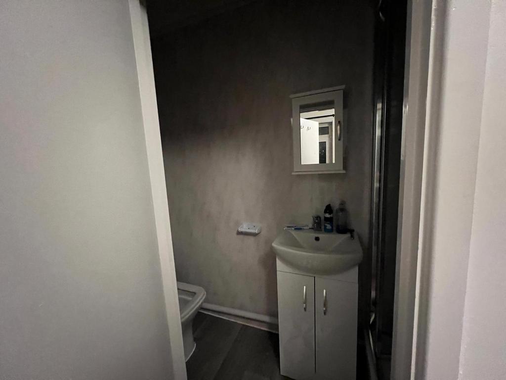 - Modern shower room with sink & vanity cabinet