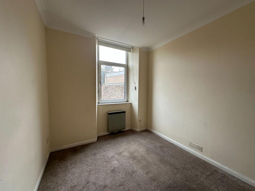 A double bedroom, with built in storage and window to back. Electric storage heater.