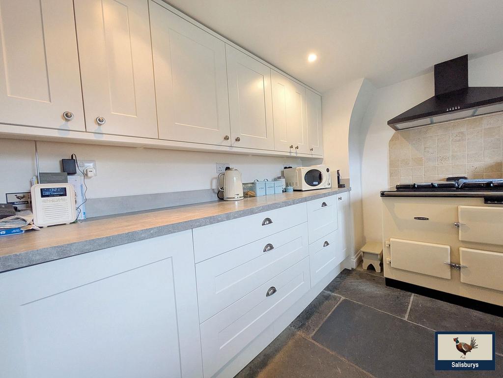 Kitchen: 3.92m x 2.33m (12'10" x 7'8") The kitchen overlooks the pretty rear garden and fields beyond. It is fitted with shaker-style wall and base units, complemented by grey worktops and a stainless steel sink with mixer tap. An electric Rayburn enhances the traditional country cottage feel. Within the base units, there is an integrated six-place dishwasher and fridge, while space for a freezer is provided under the stairs.