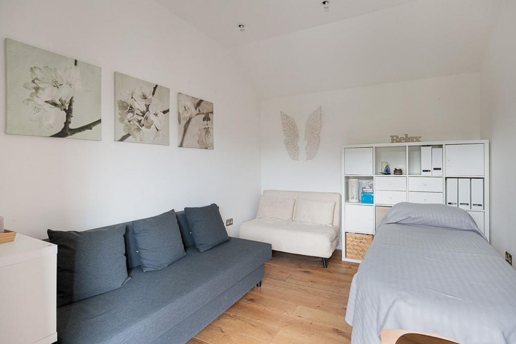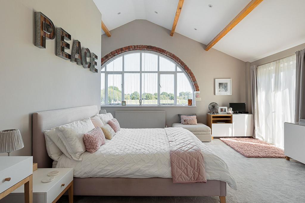 At first floor level there are three bedrooms - the main bedroom a large impressive room with a huge semi-circular window enjoying lovely open views, and boasting an adjacent en suite bathroom with freestanding bath and a shower. The second large double bedroom has a remodelled en suite shower room and the third bedroom is a split-level room with a lower level dual aspect sitting area and a mezzanine bedroom space above and this bedroom uses its own bathroom off the landing. There is a further mezzanine space above the landing, accessed via a ladder staircase which is used as an occasional bed area but could be storage space or a study perhaps.