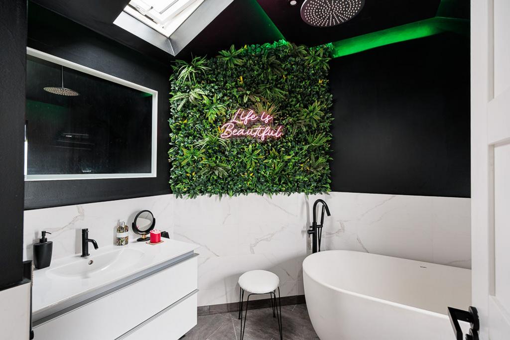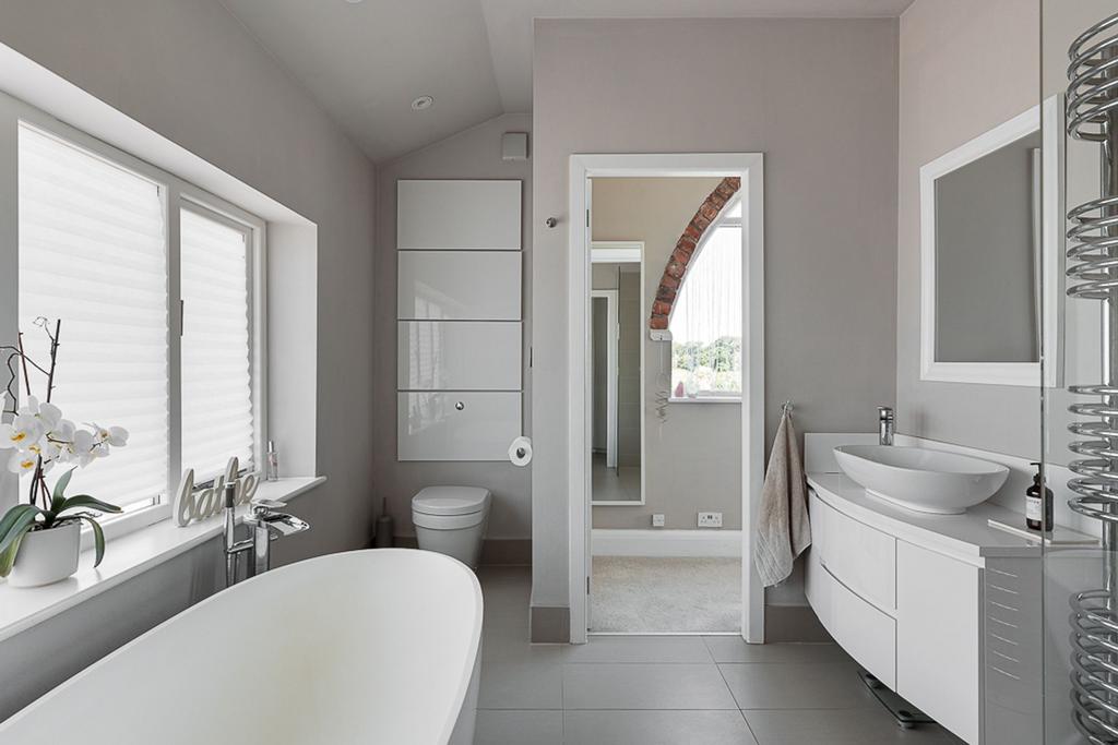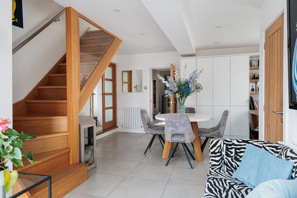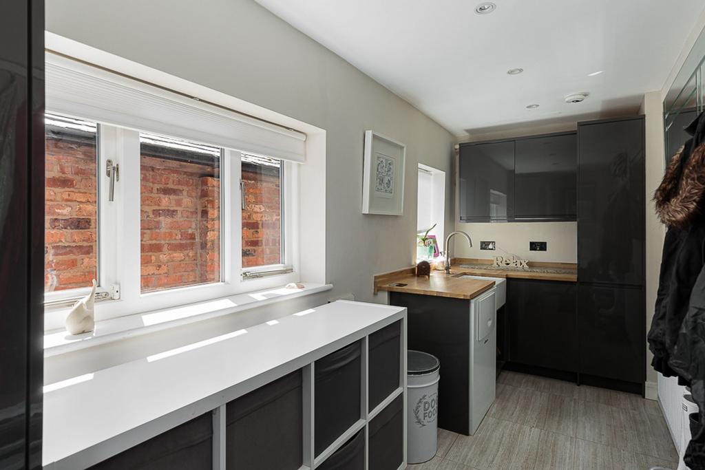 The main house is very well presented and includes a spacious open-plan dining hallway with fitted study area and a ground floor WC with contemporary staircase leading to the first floor. The lounge overlooks the front, has a wood burning stove and an oak floor and the kitchen/dining room with a range of contemporary cabinets and a central island has bi-fold doors to a covered loggia at the rear and an adjacent utility and boot room. The utility room could be taken out to enlarge the kitchen very easily. A ground floor fourth bedroom area is currently used as a gym and has an adjacent shower room and this lovely covered loggia area with a lantern roof light provides an indoor/outdoor space from the kitchen.