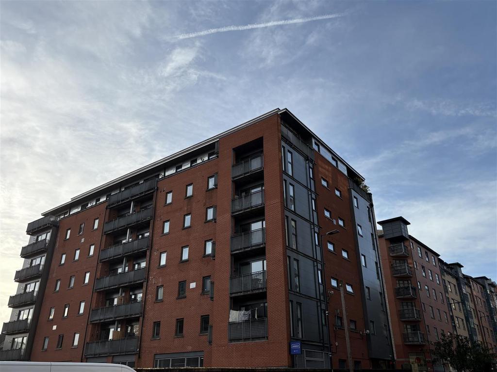 Jordan Fishwick are pleased to have for sale this well presented two bedroom apartment, found on the fifth floor of Jutland house, Piccadilly. Upon entering you are welcomed into a spacious open plan kitchen and living room with integrated appliances and access to the balcony with wonderful canal views. The apartment has a family bathroom with modern fixtures and fittings. Both bedrooms have enough room to fit double beds.