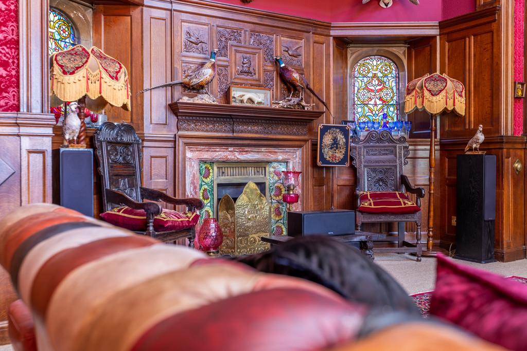 Throughout the mansion, you'll discover an abundance of original features that add to its charm and character. From beautiful stained-glass windows and stone mullions to deep bays and a William de Morgan tiled fireplace with carved oak mantle in the Arts and Crafts style billiards room, every detail has been carefully considered. The drawing room and dining room feature fine marble fireplaces, complemented by De Gournay hand-painted silk wallpaper and Pugin wallpaper designs. The intricate plasterwork on the ceilings and the parquet flooring running through the house add a touch of sophistication.