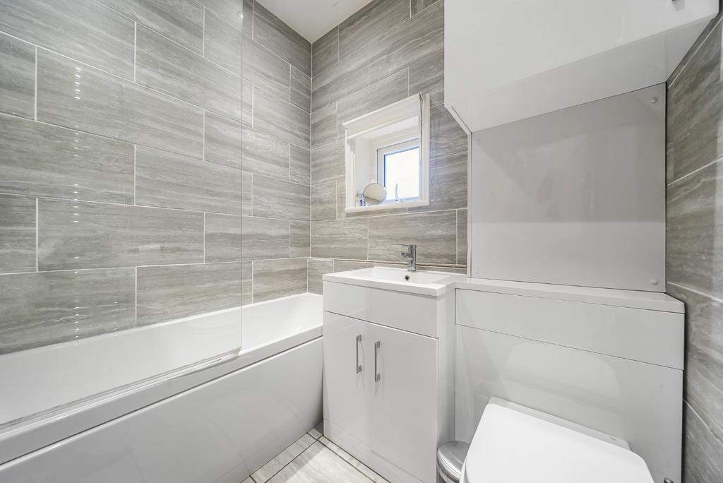 The flat benefits from a modern and stylish bathroom with a bathtub, shower, and contemporary fixtures. This well-appointed bathroom offers a serene space to unwind and relax, providing the perfect setting for your self-care routines.