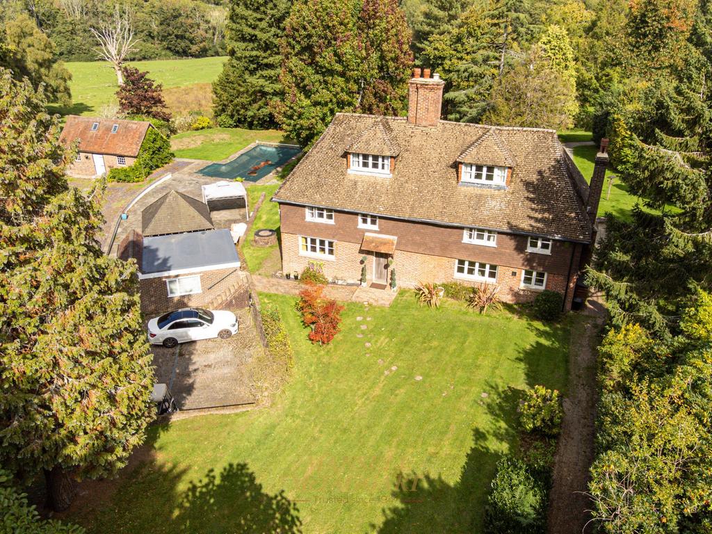 An opportunity to purchase a detached three-storey 5/6-bedroom 3-bathroom period farmhouse believed to date from the 1500s, with a separate 3-bedroom dwelling and two further outbuildings with the potential to create additional accommodation (STPP). A quiet rural setting with a plot of approximately 1.9 acres (tbv), swimming pool, entertainment area, extensive lawns and mature trees with far-reaching views across open countryside. Turning off the main road after about half a mile, along a quiet lane, there is a barbed-wire electric gate. A sweeping driveway leads to a brick-paved area, providing off-road parking for multiple cars, an electric charging point, and a double garage, with the farmhouse situated in an elevated position ahead.