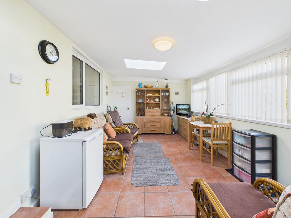 SUNROOM A generous and versatile space ideal as a second sitting room or dining area. The sunroom includes a practical utility section with plumbing for a washing machine, tumble dryer and dishwasher. Tiled flooring, uPVC double glazed windows, a door leads seamlessly out to the garden and an internal door providing access to the integral garage.