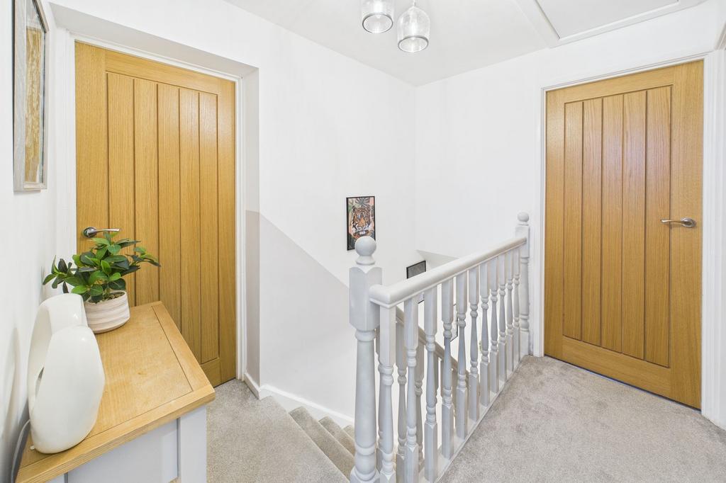 To the first floor, the home offers four well-proportioned bedrooms. The principal bedroom features a stylish ensuite shower room with sleek black fittings, while the remaining bedrooms are served by a spacious modern family bathroom, finished with contemporary fixtures and fittings.