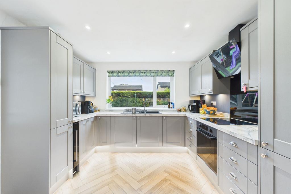 - Modern kitchen with integrated appliances and a breakfasting/dining area