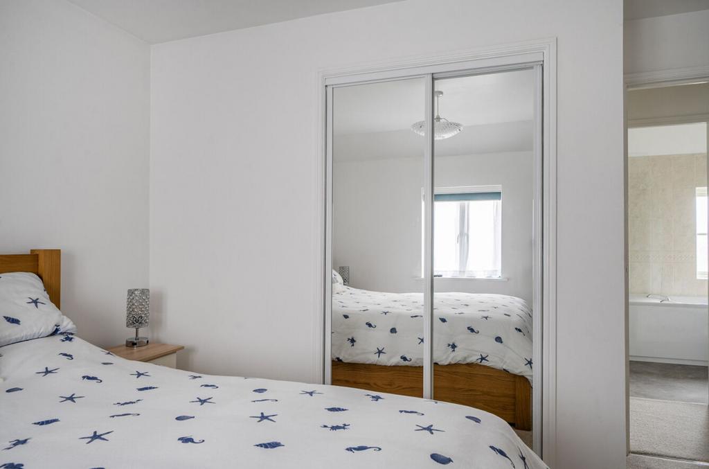 Upstairs, both bedrooms are well-proportioned and benefit from built-in wardrobes, while the principal bedroom enjoys a smart en-suite shower room. Additional features include solar panels, double-glazed windows, 2 allocated parking spaces with an EV charging point, and a private entrance offering excellent kerb appeal.