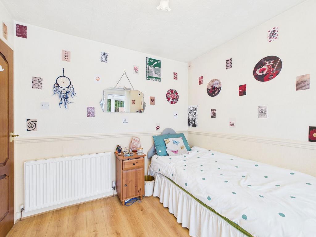 The modern kitchen is a real highlight—fitted with matching light grey wall and base units, solid wood worktops, and gloss tiled splashbacks, it creates a stylish and homely atmosphere. Complete with integrated appliances, including a double oven, gas hob with extractor fan, fridge freezer, washing machine and dryer, and a charming Belfast sink, it’s a space designed for both functionality and style. A door provides direct access to the rear garden, perfect for al fresco dining or entertaining.