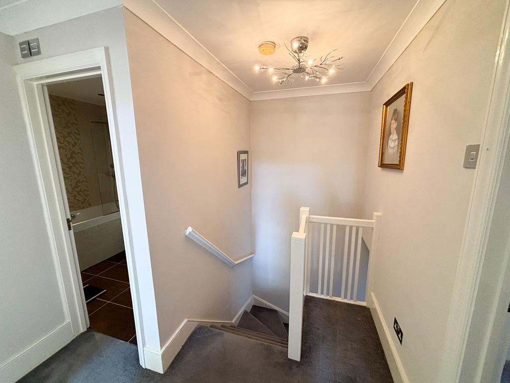 Venture upstairs to discover the three well-appointed bedrooms, each offering a tranquil retreat at the end of a long day. The second bedroom includes an en-suite bathroom, while the remaining bedrooms share a second bathroom, ensuring everyone has their own space to unwind.