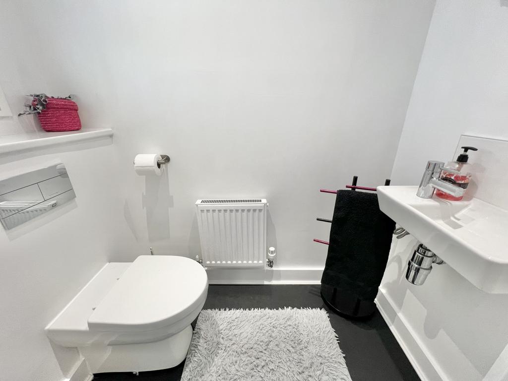 UPVC double glazed window to the front aspect, low flush wc, wash hand basin and radiator.