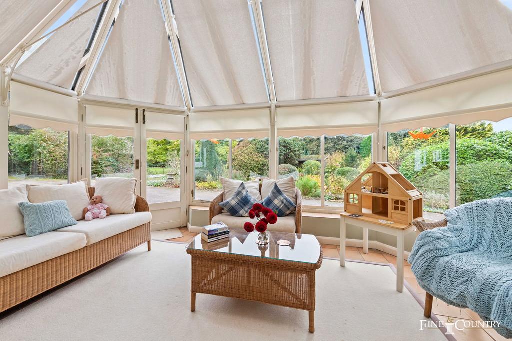 The circa 8.55-acre grounds are thoughtfully layered. Closest to the house, a tidy garden provides space for al fresco dining. Beyond, naturalistic areas flow into wildlife-friendly corners. A swimming pool complex, complete with changing facilities, a bar, and gym space, supports all-season entertaining. Sports facilities also include an En-Tout-Cas tennis court, whilst a pond, orchard, paddock with a field shelter, and greenhouse are perfect for gardeners and outdoor enthusiasts alike.