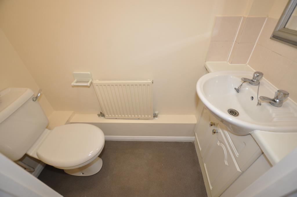 Guest WC: Low-level flush WC, vanity wash hand basin, central heating radiator, extractor fan, ceiling light.