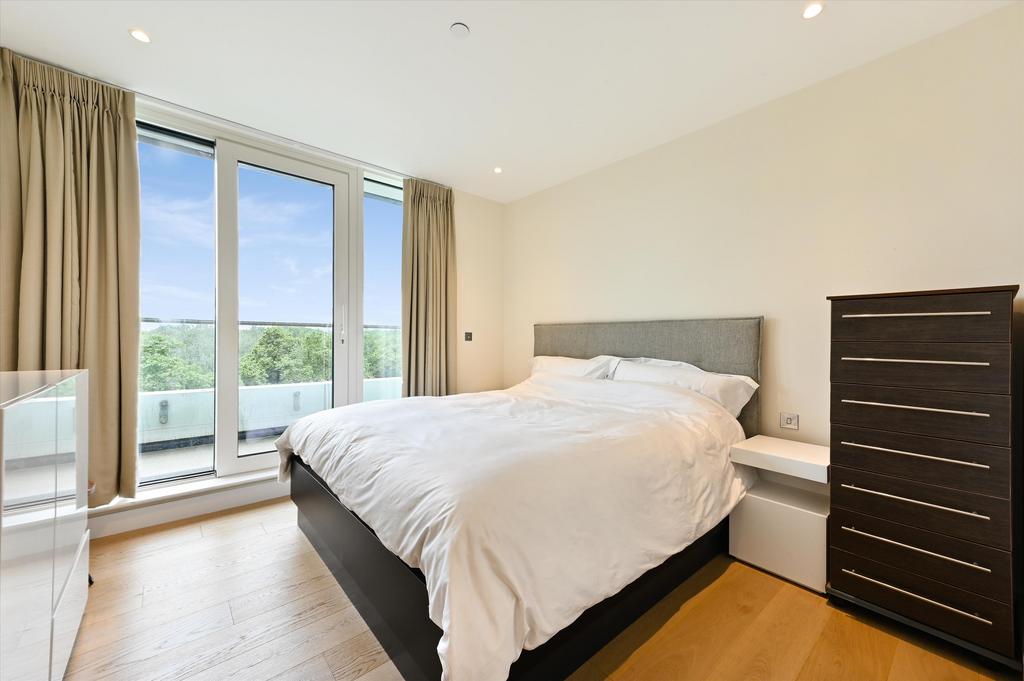 Located on the 7th floor (with lift) and offering 1,088 sq ft of living space, accommodation comprises a principle bedroom with fitted wardrobes and en suite, 2 further double bedrooms, a family bathroom with bathtub, a storage cupboard in the hallway and a spacious open plan living area, with a fully integrated kitchen, which leads onto a private south facing terrace, stretching the entire width of the apartment and offering views of Battersea Park.