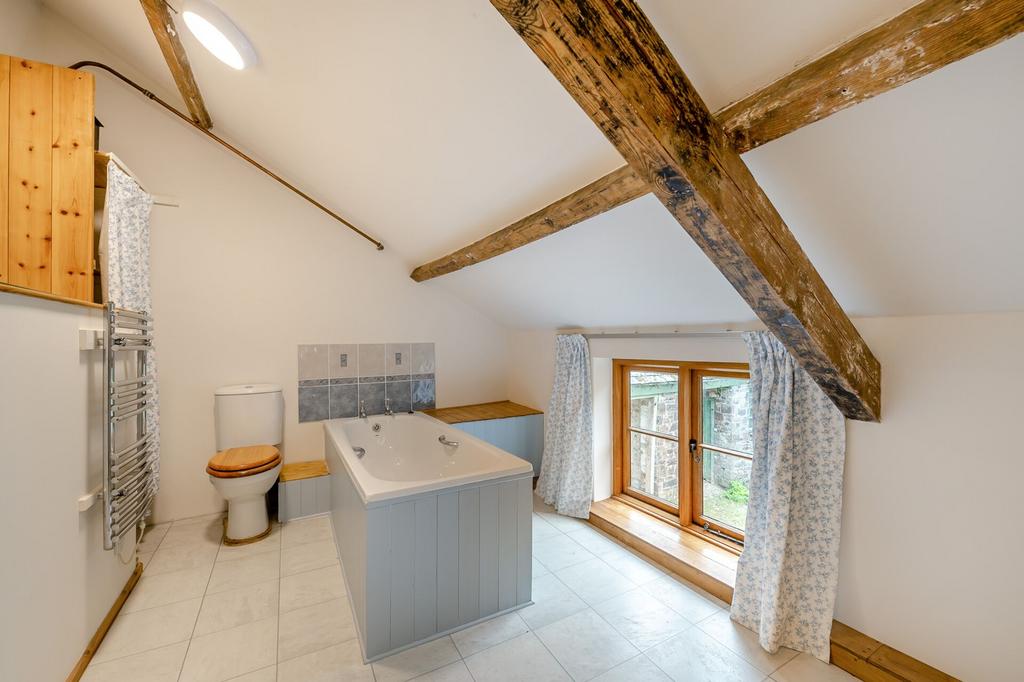 The first-floor landing leads to three light and spacious double bedrooms and a fourth single bedroom, all of which enjoy beautiful rural views. Also located on this floor is the charming country style bathroom with exposed beams and a bath located in the centre of the room. There is also a curved corner shower enclosure.