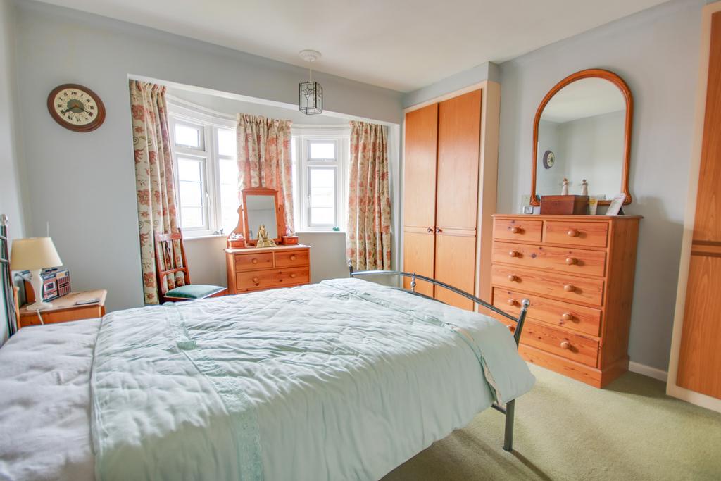 Textured finish to ceiling, UPVC double glazed bay window to the front. Two built-in double wardrobes. Radiator.