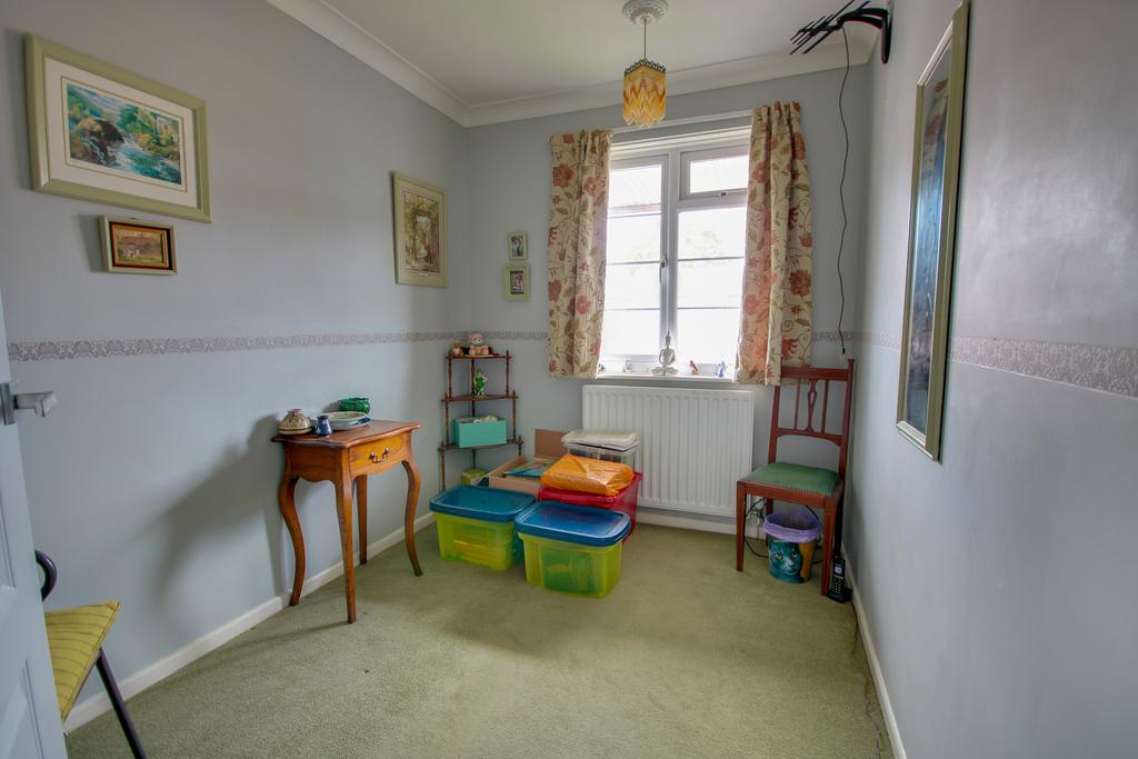 Coved and textured finish to ceiling, UPVC double glazed window to the rear, overlooking the garden. Built in storage. Radiator.