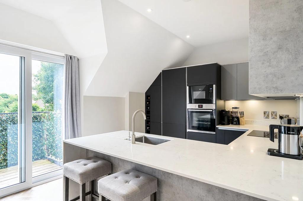 This beautifully finished two-bedroom, two-bathroom apartment occupies the top floor of an exclusive nine-unit development by Kempton Homes, offering contemporary luxury living in the heart of Warlingham.