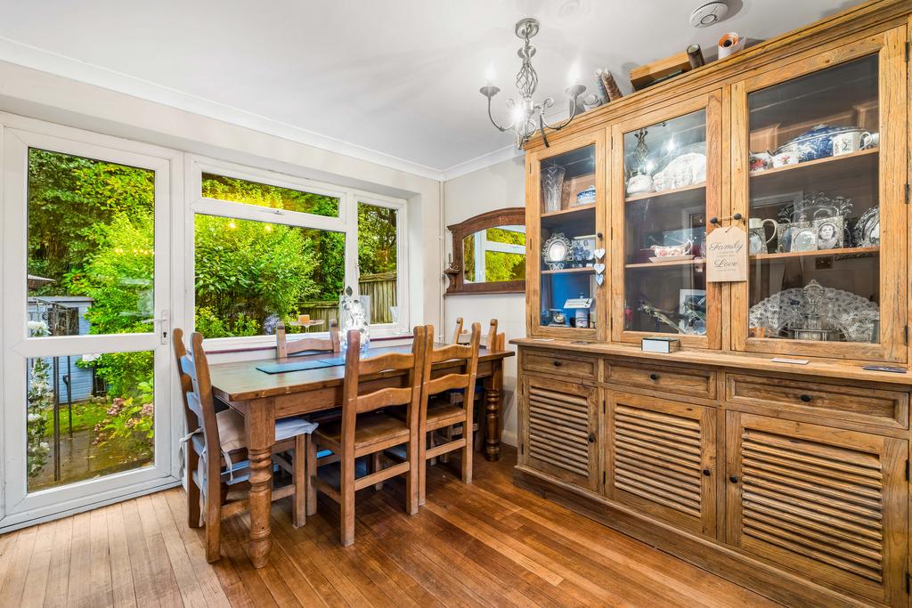 The kitchen is full of charm and functionality, with solid wood cabinetry, tiled floors and leafy green views from the sink-side window. It's a space with heart and soul, ready to be adapted to your own taste.