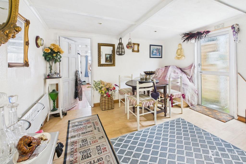 Although requiring modernisation throughout, the property has gas central heating and is mostly double glazed. The property consists of a lounge with a feature circular window to the front, into a hallway with built in storage and two double bedrooms. The kitchen has space for appliances and there is a large dining room. There is also a bathroom in this part of the house. There is a large lobby which leads to a store room, with a further store room off it. There is a kitchenette here and a shower room.