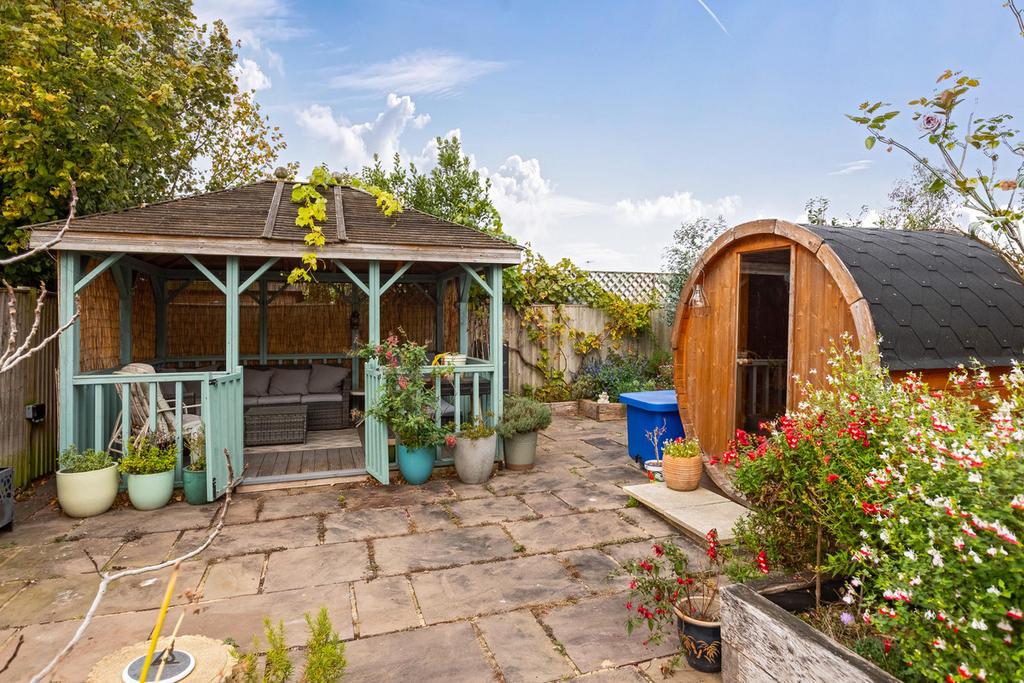 - Sunny south/west-facing garden with pergola and luxury sauna
