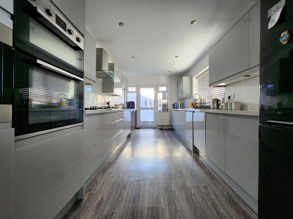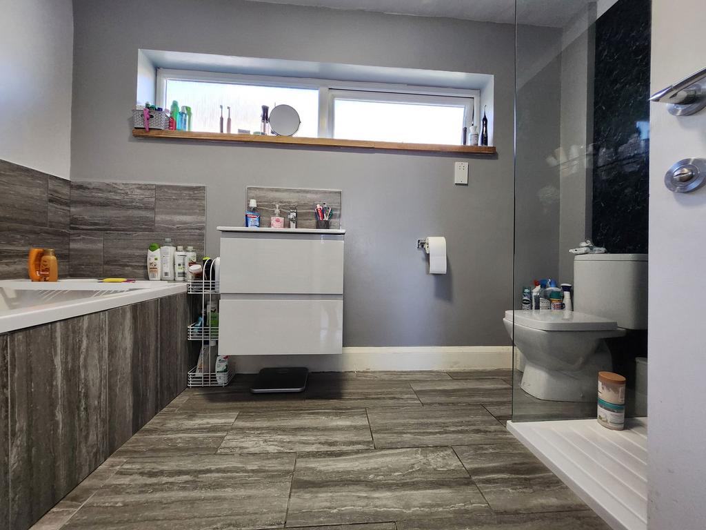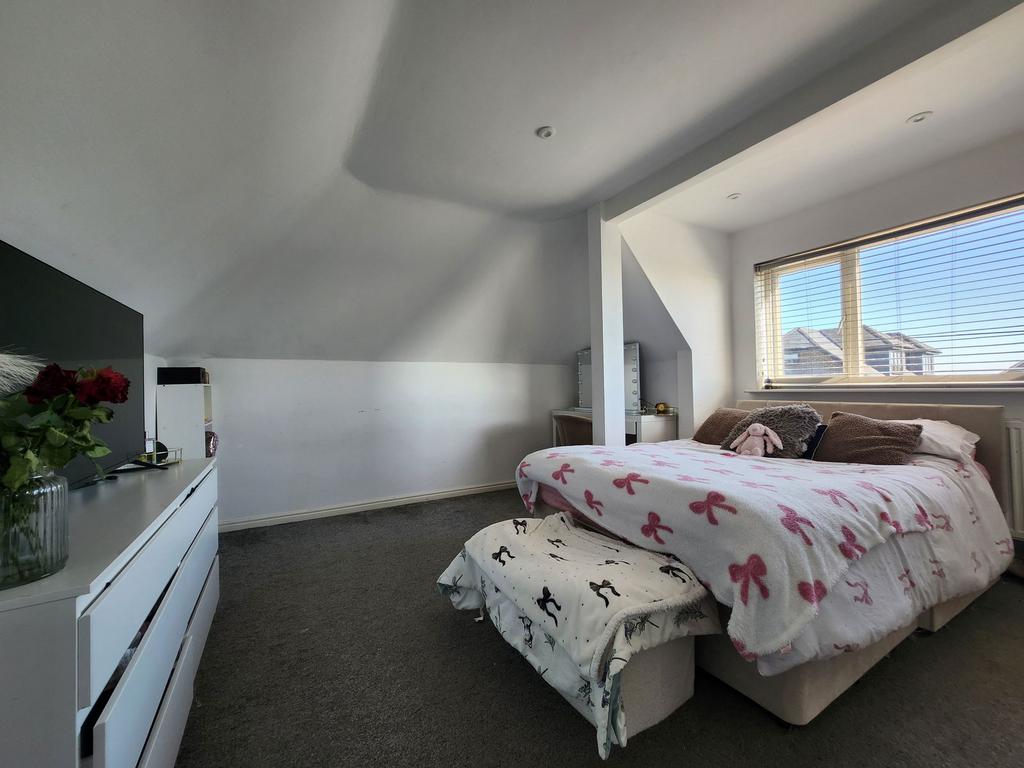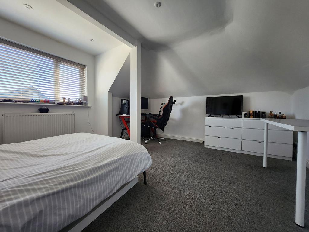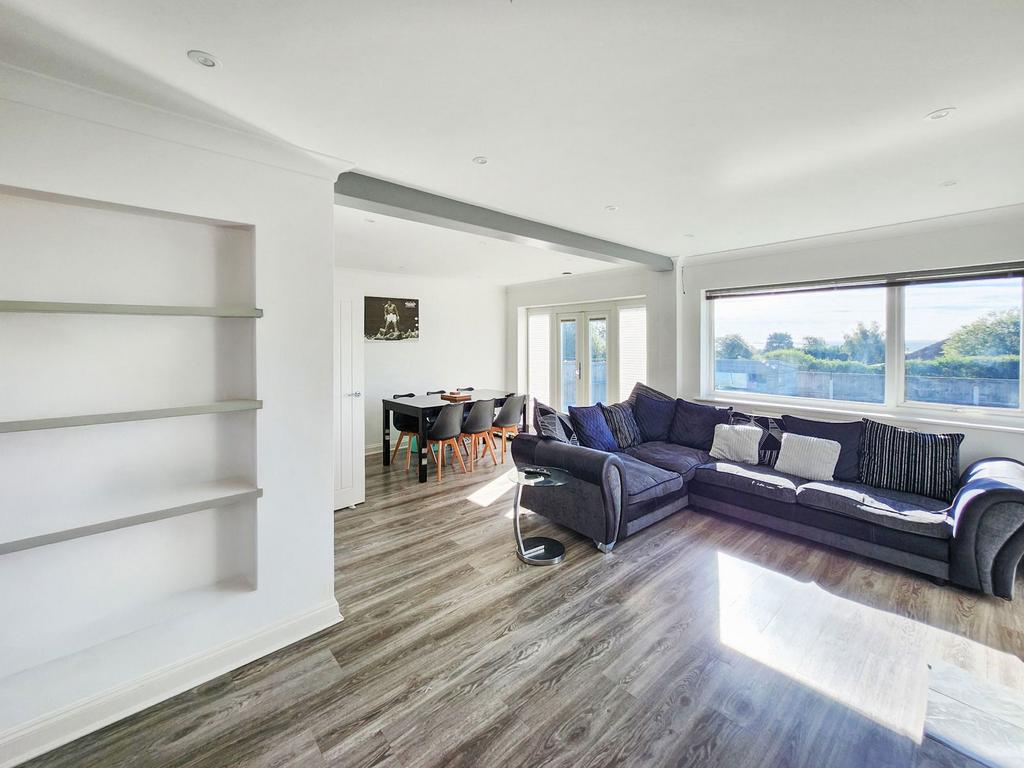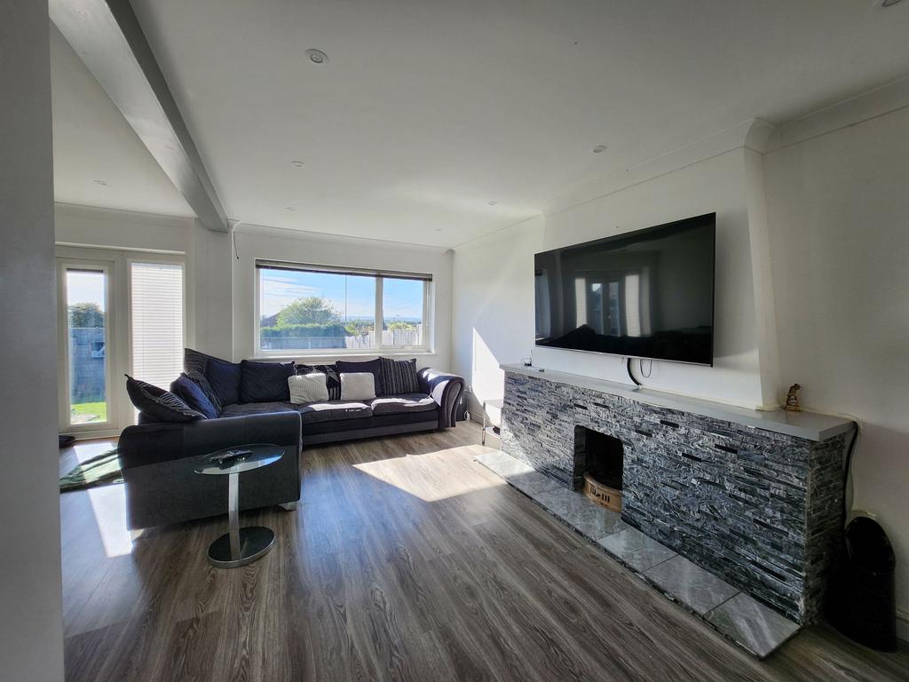 Set on a large plot, the home provides generous and flexible accommodation. The ground floor features a modern fitted kitchen with direct access to the rear garden, a main double bedroom, a family bathroom, and a spacious L-shaped lounge with double patio doors opening out to the sunny south-facing garden.